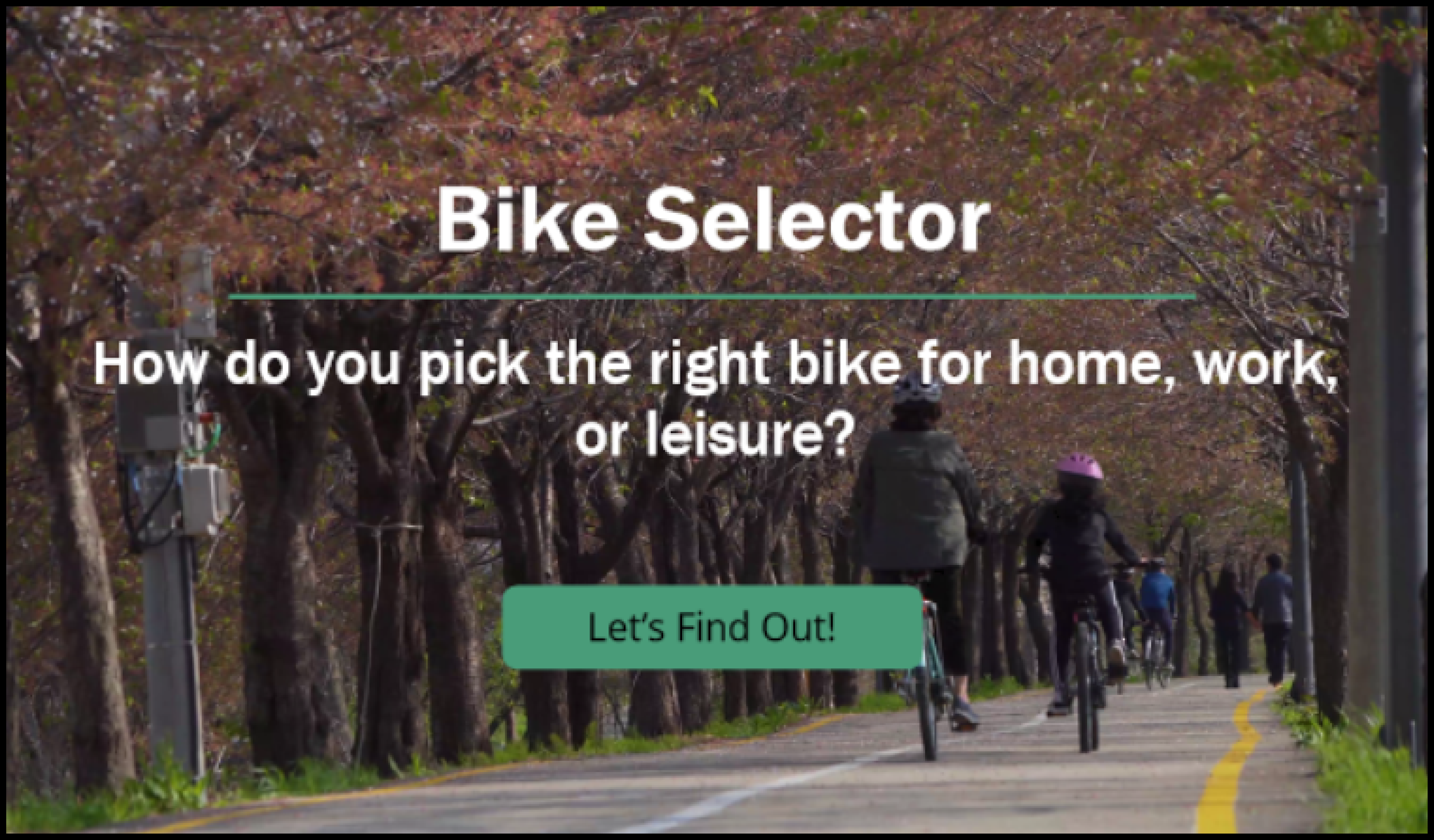This tool quickly allows users to choose their biking level and the surface type and comes up with streamlined options to allow for quick decision making without the hassle of extensive research. The tool can be offered by a variety of groups, including bike retailers and human resource departments looking to encourage exercise during leisure time.